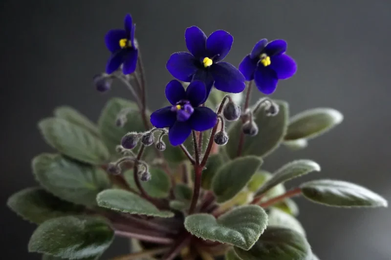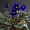 Semidouble dark purple. Dark green, plain. Semiminiature.