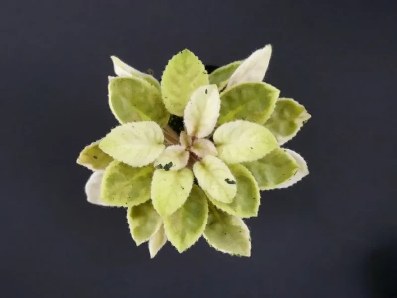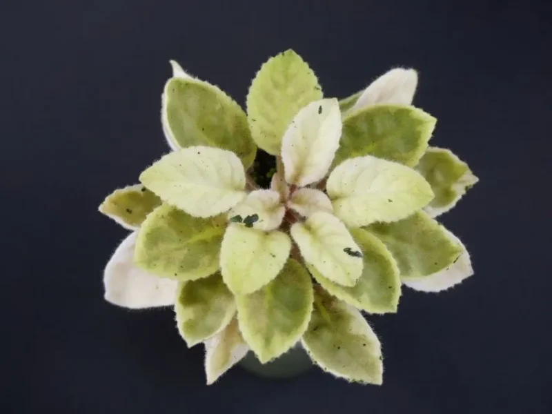 Листовая химера, полученная от листовой химеры ОК-Пояс Ориона. Получилась почти одновременно в нескольких коллекциях, поэтому не имеет приставок и без указания авторства. Химера очень нежная и красивая, лимонные листики с редкими зелеными вкраплениями. Растет медленно.
