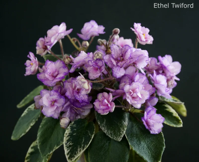 (8041) 02/10/1994 Double pink/raspberry edge. Variegated dark green and white, plain. Semiminiature (TX Hyb)