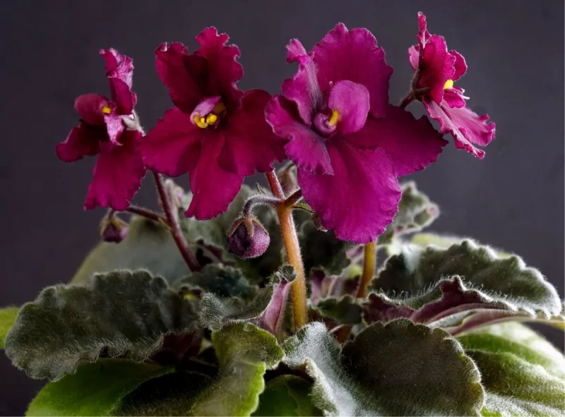 (9711) 01/15/2007 Semidouble-double red pansy. Medium green, quilted, wavy. Semiminiature (DAVS 1637)