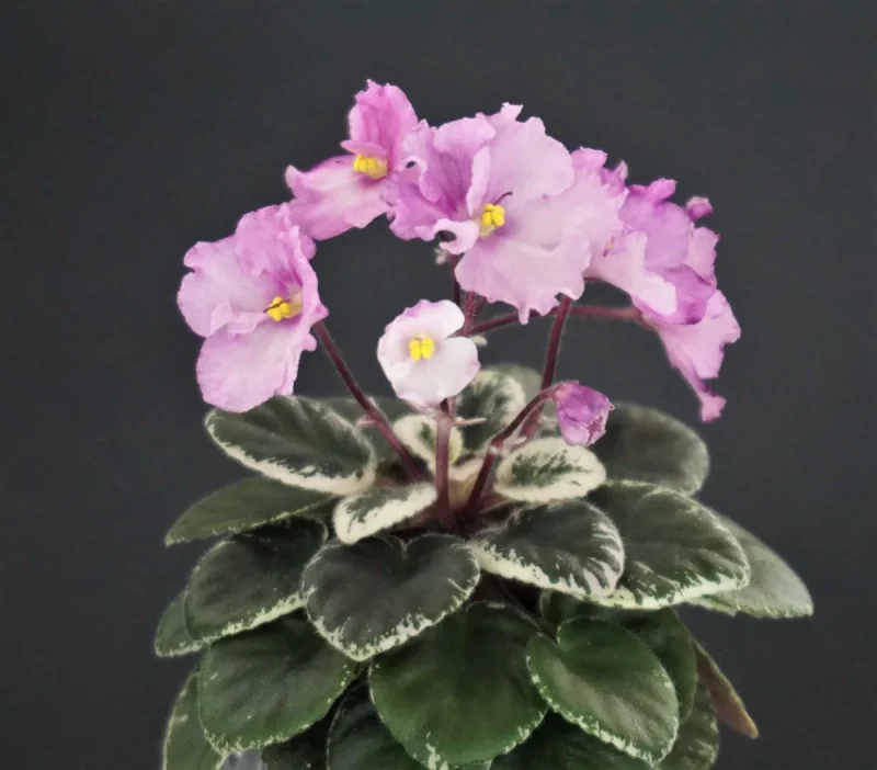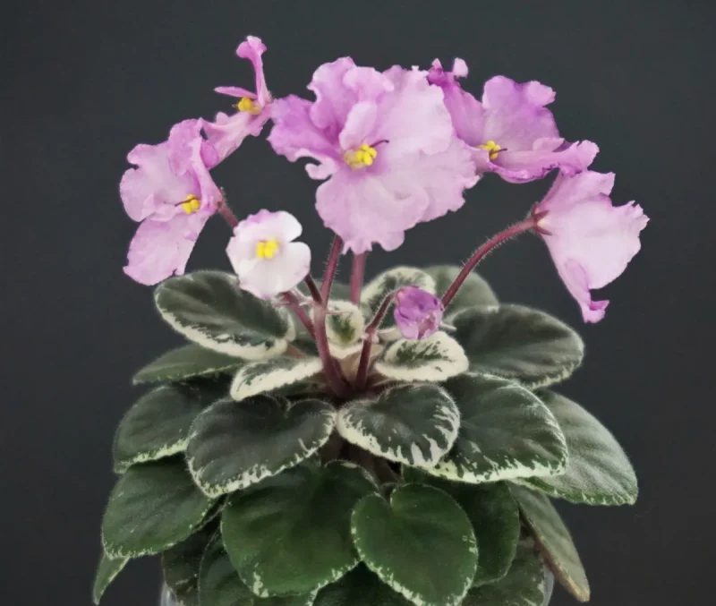 Single-semidouble pink two-tone pansy.