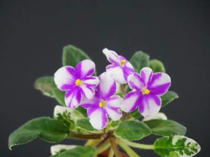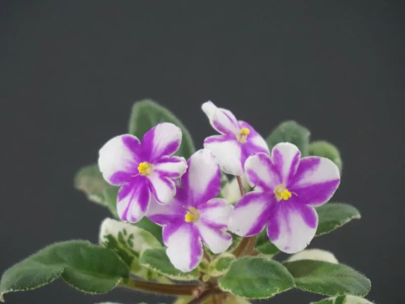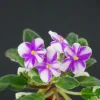 Semidouble chimera fuchsia pansy with white stripe, green edge.