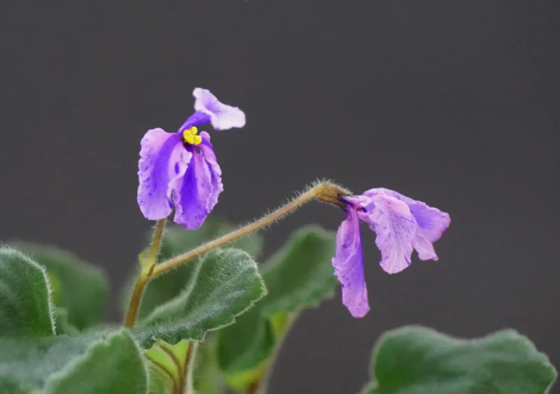 Single chimera pink wasp/blue stripe, dark blue fantasy. Medium green, bustle-back, serrated. Small standard
