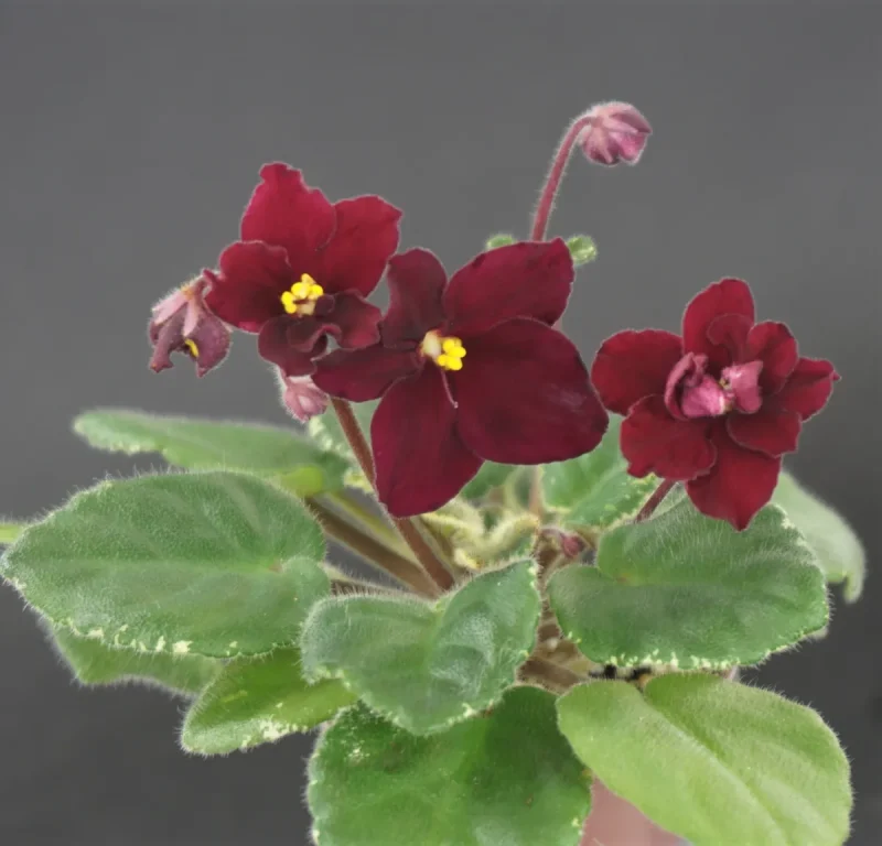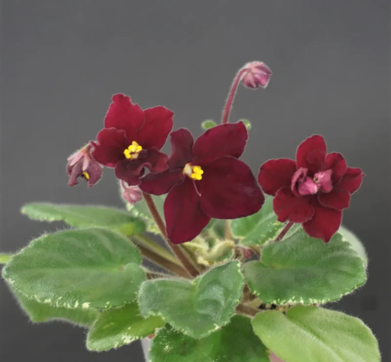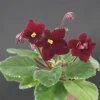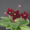 Single to semidouble scarlett red pansy, variegated medium green and white.