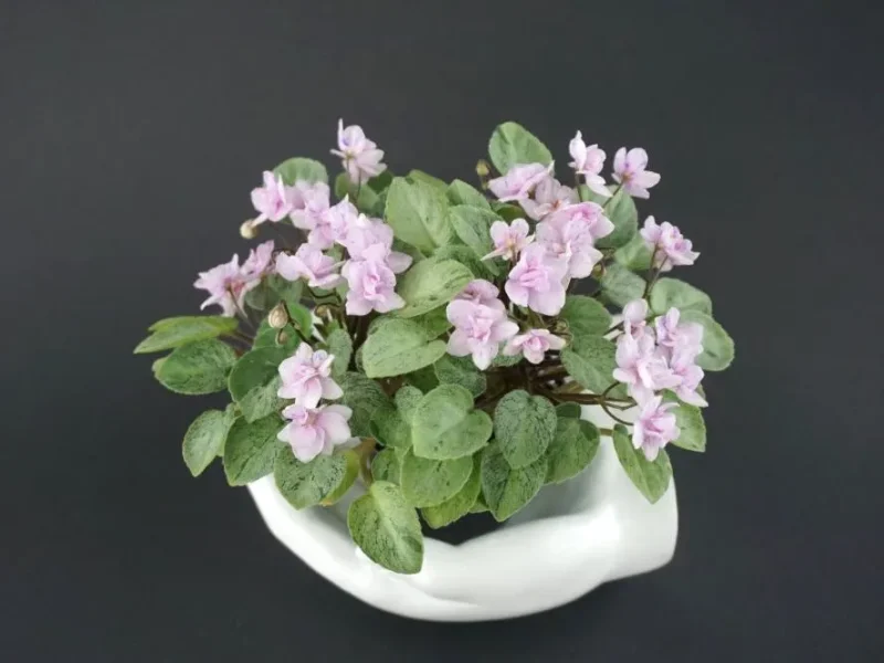 Листовая химера. Средне-зелёная листва с серебристым рисунком-паутинкой по всей листовой пластине. Полумахровые светло-розовые некрупные цветы с мелким синим фентези. Полуминитрейлер. Химерный спорт от Rob’s Boolaro (R. Robinson)